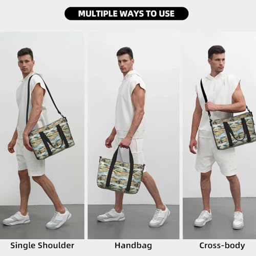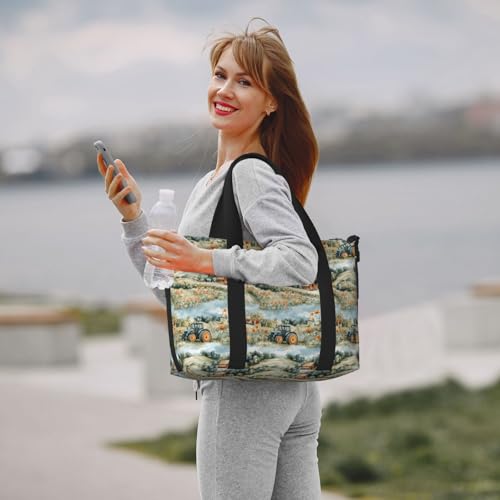 Laptop Tote Bag for Women Work - Village Flower Tractor Print Weekender Overnight Bags for Women Travel, Gym Duffle Bag for Men, Personal Item Crossbody Travel Bags for Men Carry On