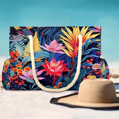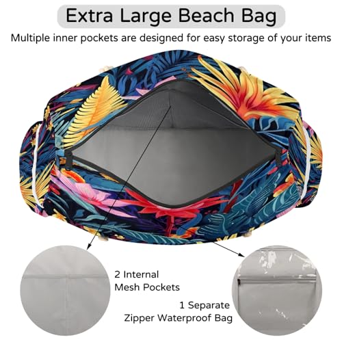 trending ! Colorful Floral Large Beach Bags for Women with Zipper Beach Tote Bag Waterproof Sandproof Gym Swim Pool Grocery Travel Bag