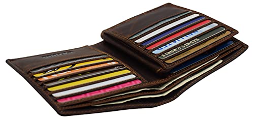 Brand: MARSHALColor: Cazoro BrownMaterial: LeatherStyle: BifoldPattern: Solid✓PROTECT YOUR MONEY & CARDS: If you love traveling or are always on the run, then this leather Hipster wallet is an absolute must have. It has powerful RFID blocking technology that will protect your money and credit cards from electronic pickpocketing. Get yourself this reliable ally against electronic theft and find your peace of mind!✓WHEN STYLE MEETS ERGONOMICS: Made from premium genuine leather hipster wallet, this bifold wallet is here to shelter your credit cards and personal information in style. Forget about easily broken zippers, seams coming loose and poor stitching falling apart. Enjoy this wallet for the many years to come and protect your personal belongings.✓FITS EVERYWHERE YOU WANT: This RFID blocking wallet is large enough to hold anything you want, yet compact to fit everywhere you please. Put it in your pocket, briefcase, purse, handbag, backpack, or in your waist pack. It’s simple but sophisticated design makes it ideal for all men, women, travelers, and you of course!✓MORE SLOTS MORE CONVENIENCE: Hold one of our Marshal hipster wallet in your hands today, open it and discover its many slots and compartments. 12 slots for your credit or debit cards, your shopping cards, or gift shopping cards. 2 large bill compartments that will carry your money safely and 1 ID window. Place your ID or driver’s license.✓MAKE A THOUGHTFUL GIFT: Searching for the coolest and most useful gift to a dear friend or family member? You should end your search here with this elegant leather RFID wallet. It comes in 2 colors, black and brown to choose from. Get the one that suits you best or just get them both. Pleasantly surprise your beloved ones! Perfect for everyday use. High quality materials and excellent craftsmanship ensure long-lasting durability.