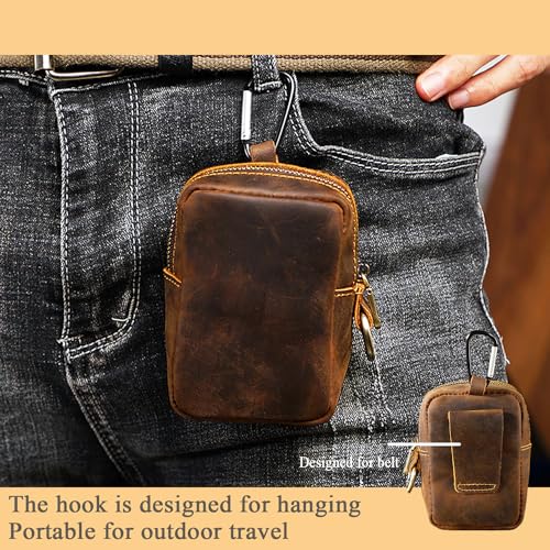 • 【Exquisite Craftsmanship】 Carefully crafted using premium top-grain crazy horse leather, this coin pouch offers a smooth and delicate touch. The special treatment retains the natural texture and vintage appearance of the leather, while ensuring a smooth and pleasant feel. The sturdy metal ring and smooth metal zipper enhance durability.