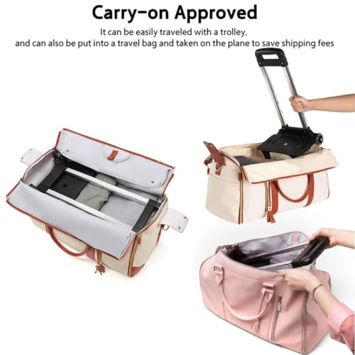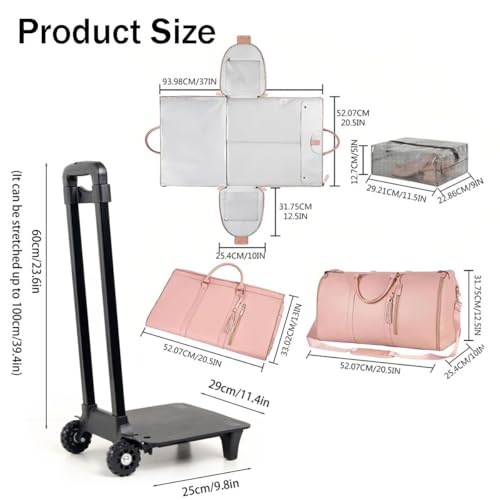 【Premium 2-in-1 Travel Bag Upgrade】Experience the Styleushaven Foldable Travel Bag 2.0 – crafted from waterproof PU leather that’s chic, durable, and easy to clean. Features a detachable bow for versatile styling, a quick-access front pocket for passport & phone, and convertible design perfect for honeymoons, weekend getaways, or business travel【Wrinkle-Free Garment Care】Styleushaven Travel Bag with our built-in garment hanging system. Adjustable bottom clips and inner buckles keep clothes flat and wrinkle-free, while a smooth gold zipper and safety buckle protect your belongings. Arrive at your destination looking polished and put-together every time【Waterproof Shoe Compartment】The Weekender Bags for Women Includes a separate waterproof shoe bag to keep footwear away from clothing for a cleaner, fresher trip. The foldable structure means you can pack the entire bag into your suitcase when not in use – ideal for organized, space-saving travel【Carry-On Friendly, Gown-Ready】The 2 in 1 Convertible Duffle Bag sized for carry-on convenience at 20.5 x 10 x 12.5, yet expands to 52.5 to fit gowns or suits. TSA-friendly design lets you fully open and close quickly at airport security. Perfect for weddings, formal events, and business trips without the hassle of checking luggage【sophisticated & Versatile Carry Options】The Duffle Bag for Travel with Elegant PU leather with scratch-resistant finish works for both business and leisure. Carry as a handbag, shoulder bag, or crossbody with an adjustable 29–49 strap. Rolling wheels make long walks effortless Perfect for everyday use. superior materials and excellent craftsmanship ensure long-lasting durability.