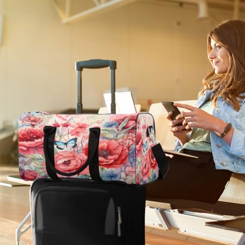 TropicalLife Red Peony Travel Duffle Bag for Women Men Sports Gym Bag Waterproof Carry on Overnight Weekender Bag