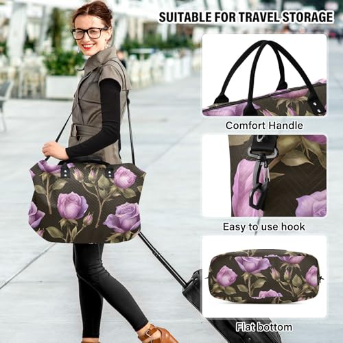 More information about Rose Travel Gym Bag, Flower Rose Purple Tile Pattern Weekender Overnight Duffle for Women with Toiletry Bag Travel Swim