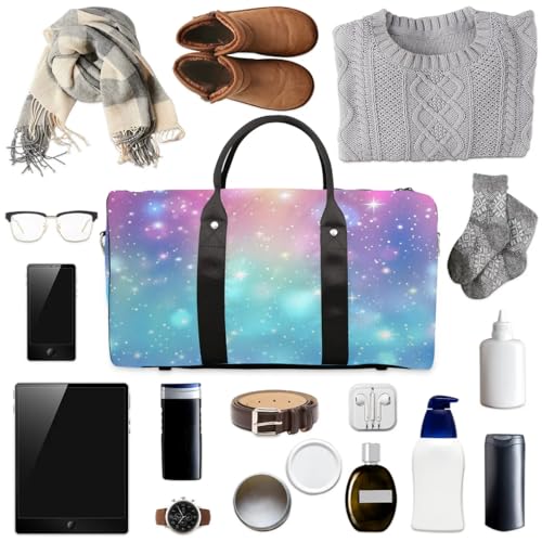 trending ! Glitter Rainbow Travel Duffel bag for Men Women Weekender Overnight Bag Gym Bag Carry On Luggage Bags for Yoga Workout Sports