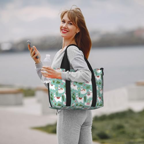 • Women's Overnight Bag: This White Cute Alpaca Green Cactus handbag can be carried by hand or worn as a tote bag for women. You can pack clothes, magazines, documents, cell phones, keys, laptops, glasses, toiletries, and more in this travel bag. The multi-functional overnight bags for women helps you organize and store your items easily, allowing for user-friendly access whenever you need them