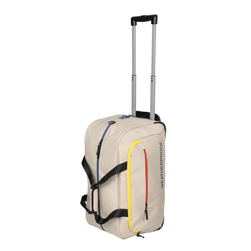 MULTIPLE COMPARTMENTS: Effortlessly organize your belongings with the multiple compartments of this wheeled duffle bag. The large top zipper opening and two zippered front pockets provide convenient storage for a well-arranged travel experience.WHEELS: Glide through your journeys seamlessly with the two smooth rolling wheels of this tan Weatherproof duffle bag. The retractable trolley handle adds a touch of convenience, ensuring your travels are both sophisticated and effortlessly mobile.OFFICIALLY LICENSED: Travel with confidence, knowing that this Weatherproof wheeled duffle bag is officially licensed. Embrace the assurance of quality as you embark on your adventures with a genuine and reliable companion.HIGH-QUALITY MATERIALS: Crafted from durable 600D materials, this wheeled duffle bag guarantees longevity and resilience. The high-quality construction ensures it withstands the demands of your travels, offering both style and durability.CARE INSTRUCTIONS: Maintain the sophisticated appearance of your wheeled duffle bag effortlessly. Wipe it clean for a fresh and polished look, ensuring it remains a chic and dependable travel companion. Perfect for everyday use. superior materials and excellent craftsmanship ensure long-lasting durability.