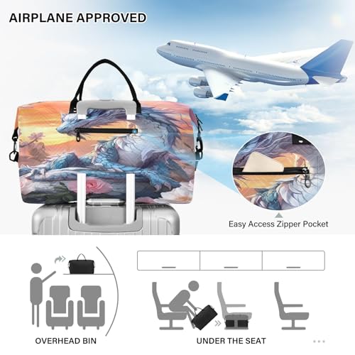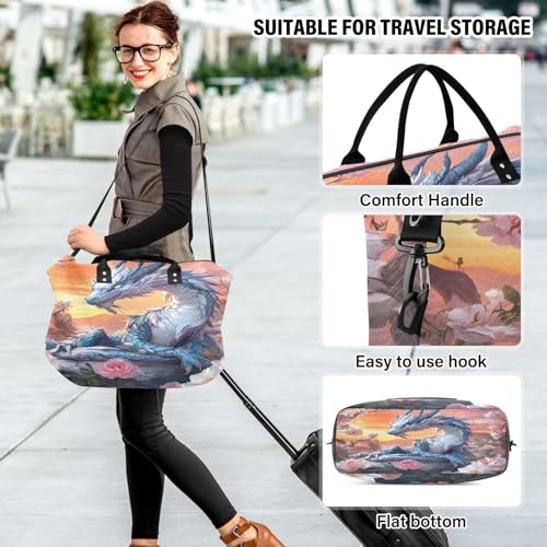Weekender Bags Travel Duffel Gym Bag Flower Blue Dragon Carry on Overnight Tote Bag with Toiletry Bag for Airplane Travel Trip Gym Yoga