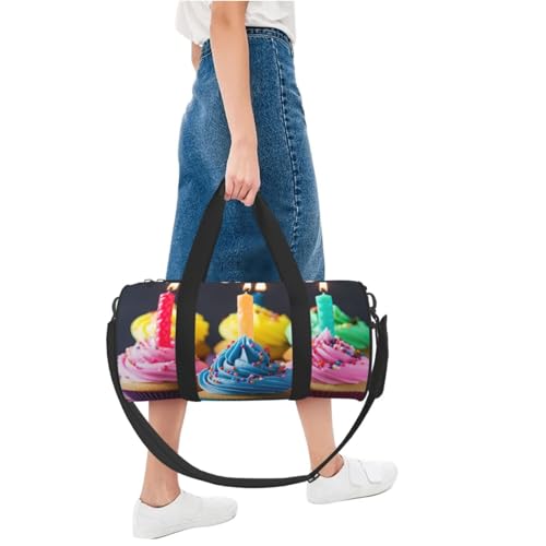 More information about Travel Duffel Bag Sports Gym Bag With Shoes Compartment,Lightweight Overnight Weekender Bag Colorful Happy Birthday Cupcakes Yoga Gym Sports Bag For Men Women