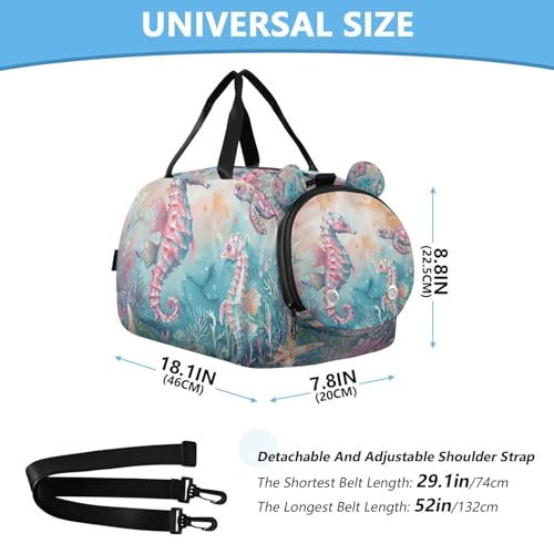 Duffle Bag for Boys or Girls with Shoes Compartment, Seahorses Turtle Watercolor Sports Travel Bag Overnight