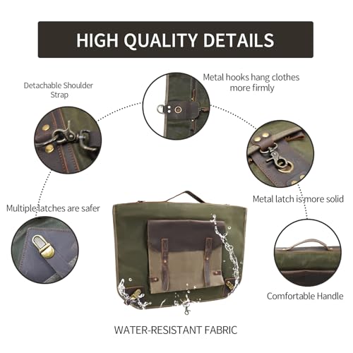 More information about Waxed Canvas Leather Suit Luggage Garment Bag with Shoulder Strap for Work and Business
