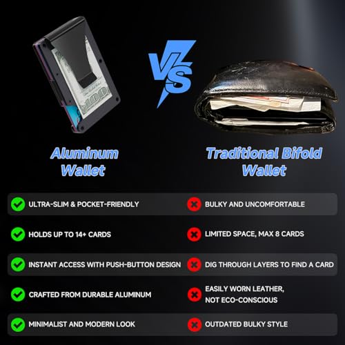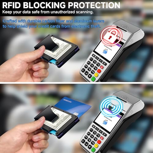 Brand: BOKKYColor: BlackMaterial: MetalStyle: Minimalist Slim Card HolderPattern: CheckeredSMOOTH CARD SLIDE-OUT : No more stuck cards. Our carbon business card holder features a C-shaped thumb notch and elastic band that allows quick access to up to 15 cards-just push and slide.ULTRA-SLIM YET SPACIOUS : This rfid wallet for men has 0.8cm thick—thinner than your phone. This slim wallet for men easily stores 1–15 cards and 10+ bills, perfect for front pockets and minimalist wallet for men seekers.DURABLE BUILD : This money clip for men say goodbye to chipping paint. Made from genuine carbon fiber with a stainless steel clip, this Ridge Wallet-style build resists scratches and wears beautifully over time.STRONG MONEY CLIP : The spring-steel clip and reinforced elastic keep cash firmly in place—no more loose clips or falling bills. Keychain wallet passes 100,000+ tensile tests.GIFT-READY FOR MODERN MEN : This slim wallet comes in a premium box—whether it’s a smart airtag wallet, a business card holder, or a sleek billeteras de hombres, this is a perfect gift for any occasion. Perfect for everyday use. premium materials and excellent craftsmanship ensure long-lasting durability.