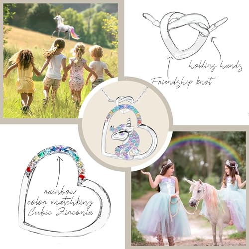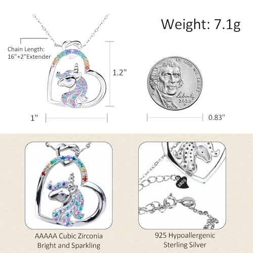 • [Material]Crafted from S925 sterling silver with white gold plated, this daughter's jewelry ensures hypoallergenic wear and is on the house from harmful substances,ensuring your princess's safety. This daughter jewelry decorated with colorful 5A Cubic Zirconia crystals for the rainbow and unicorn, it sparkles beautifully in the light