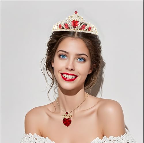 Descendant 4 Rise of Red Crown and Necklace Descendant 4 Gold Tiara Jewelry Set Queen of Hearts Crown Eive Costume Gift for Girls Teen Party