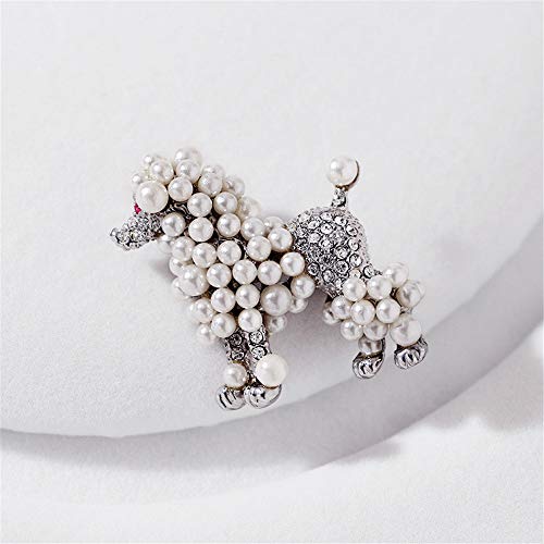 trending ! Cute Simulated Pearl Poodle Dog Brooch Pin Rhinestone Animal Lapel Collar Jewelry Accessories