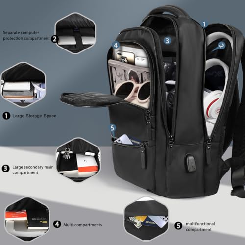 Carry on Backpack for Man Women,Extra Large Travel Bussiness Waterproof Backpack,BLACK,00591