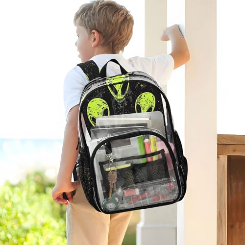 Green Alien Space Clear Backpack PVC Transparent Backpack Lightweight Book Bag Capacity Clear Bag for Kids Boys Girls