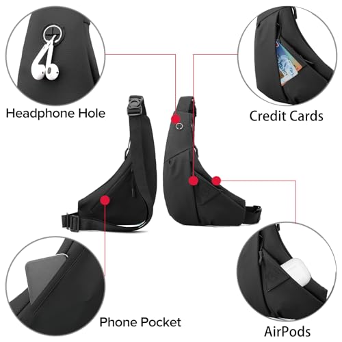 trending ! Small Sling Shoulder Crossbody Bag Men Women, Lightweight Anti-theft One Strap Casual Chest Bag Slim Backpack for Outdoor Walking Trip Hiking Biking Black