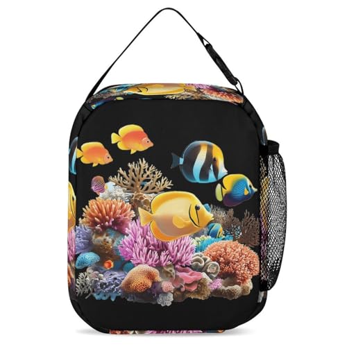 Colorful Tropical Fish Printed Backpack with Lunch Box Bag Pencil Case Pouch 3pcs Daypack Set for Women Men