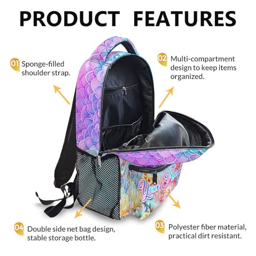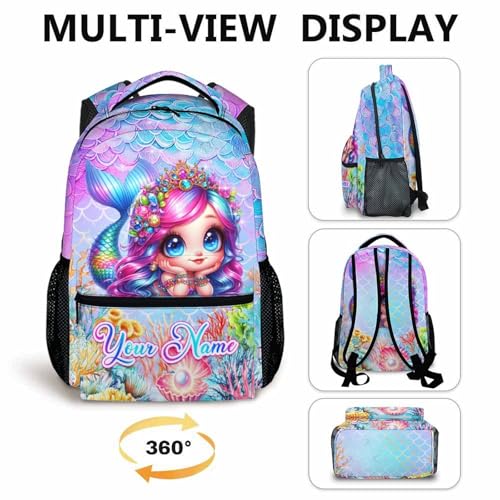 trending ! Girls Backpack for School, Personalized Mermaid Backpacks for Kindergarten Elementary, Custom Lightweight Toddler Bookbag with Name for Girls 3-6, Back to School Gift