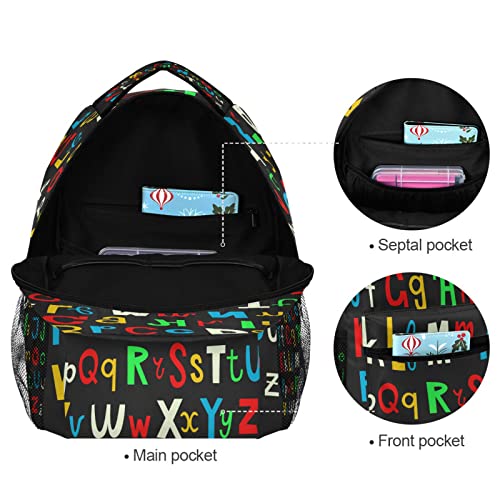AUUXVA Rainbow Alphabet Kids Backpack for Boys Girls,Letter Education 16 Inch School Backpack for Elementary Preschool Kindergarten Bookbags for Teens Children Women Men College Travel Bag