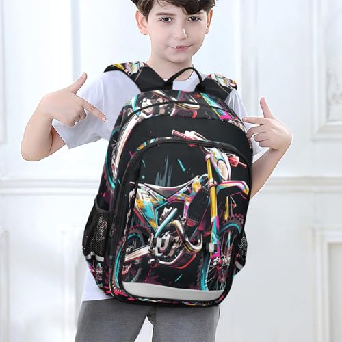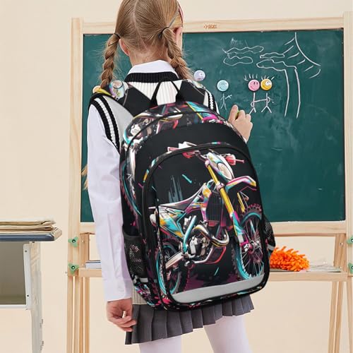More information about Motocross Neon Cartoon Backpack for Boys Girls Kids School Bag Lightweight Laptop Backpack Elementary Capacity Bookbags for Travel Daypack with Reflective Stripes