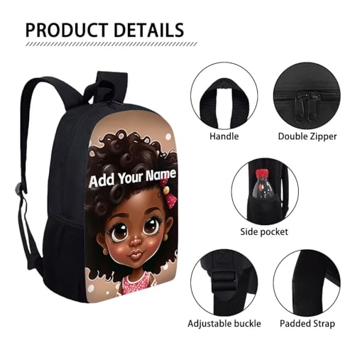 Personaized Backpack for Girls 4-6 Afro Kids Bookbag Custom Name Book Bag for Student 2 Grade/3Rd Grade Black Magic School Bag