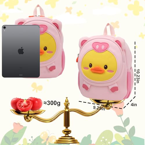Cute Toddler Backpack for Boys Girls, Preschool Backpack Neoprene Animal Schoolbag, Kids Child Kindergarten Lunch Backpack (Pink Duck)