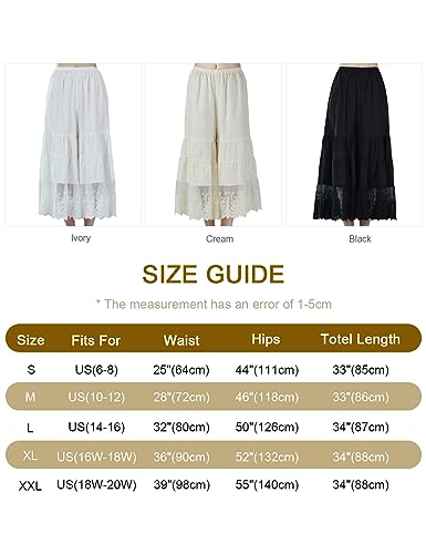 • ★ WIDE LEG & LACE HEMLINE -- The design of wide leg will not tight the legs, offers a roomy and airy and relax feeling. The floral eyelet lace hem, looks more lovely and elegant and feminine, it’ll be the attractive spot light when wear it as skirt extender or slip. Never mind for the stumble.