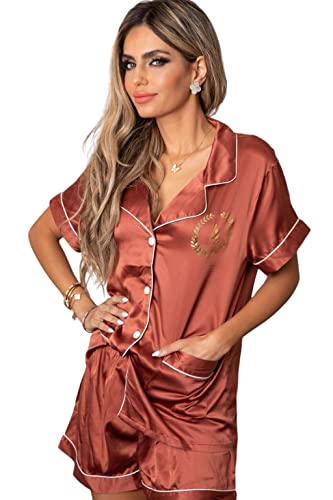 Holiday Gift Pajama Sets for Her, Sleepwear Bridesmaid PJs, Bridesmaid Personalized Gift, Holiday Pajamas Customized, Bridal PJS, Bridal Satin Shorts, Lingerie Wedding Preparation, Bridesmaid Gift