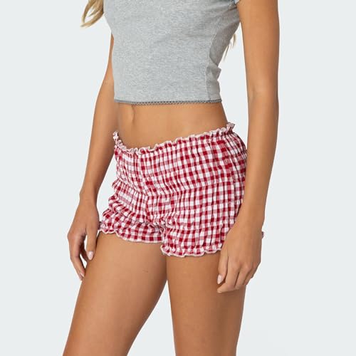 Women Plaid Ruffled Boxer Shorts Gingham Low Rise Bloomers Y2k Micro Pajamas Shorts Casual Mini Pj Bottom Shorts