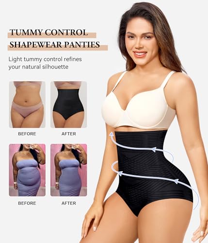 • 【High Waisted Shapewear】 The high waisted panty with 4-way high stretch fabric cleverly covers the waist and tummy, smoothly shapes the curves.Built-in 4 steel bones with an anti-slip silicone strip effectively preventing the tummy control shapewear briefs from rolling down.