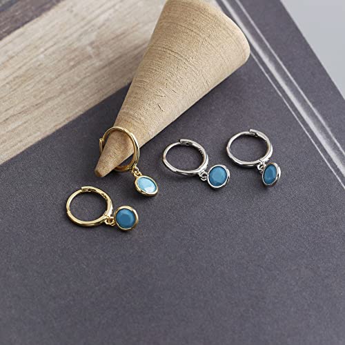 More information about Dainty Bezel Hoop Earrings for Women Girls 925 Sterling Silver Hypoallergenic 6mm Round CZ Birthstone Charms Dangle Drop Cartilage Small Hoops Huggie Jewelry Cute Birthday Holiday Homecoming BFF Gifts