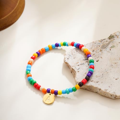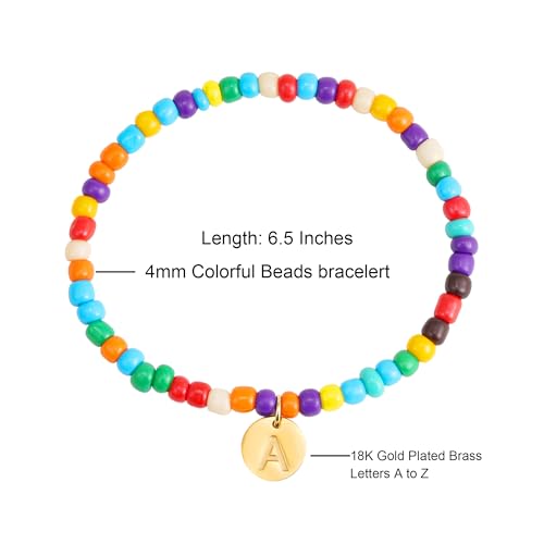Colorful Initial Bracelets for Women Girls, Cute Beaded Initial Bracelet Teen Girl Gifts Trendy Stuff Gold Disc Letter Bracelet Personalized Gifts for Women Jewelry