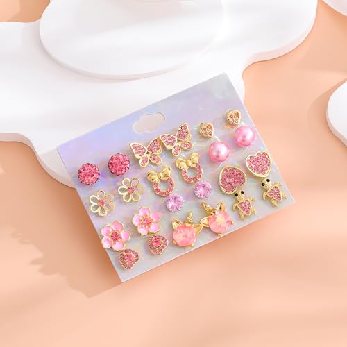 Material: ZincMetal type: CopperBack Finding: ClutchlessEarring design: StudGem type: No Gemstone【VARIOUS CUTE STUD EARRINGS SET】You will get a selection of 12 pairs of gold pink stud earrings for girls. Our stud earrings set come in a rainbow of styles, including CZ, heart, butterfly, flower, pearl, mouse, ball, turtle and more. They're a hit with girls and women alike! These stud earrings are recommended for girls over three years old【HYPOALLERGENIC MATERIALS】Our girls earrings, crafted with care from hypoallergenic alloy, sparkling pink rhinestones and simulated pearls, and plated in a gold tone. So the earrings studs are nickel and lead free, not easy to fade, plush to wear, also suitable for sensitive ears. They have a stainless steel post and come with bullet clutch earring backs【EARRINGS FOR EVERYDAY DRESSING】These earrings are an excellent addition to any woman's wardrobe. They come in a variety of styles that can be paired with dresses, coats, jackets, etc. and are great for everyday wear. Stud earrings are a timeless choice that any woman can enjoy, whether you're sharing them with your daughter, sister, or friends【BEST PRESENTS FOR WOMEN GIRLS】The delicate stud earrings for teen girls are attractively packaged and would make a thoughtful gift for yourself, your mother, grandmother, wife, daughter, sister, girlfriend or good friends on a special occasion such as a birthday, Christmas, Valentine's Day, Mother's Day, anniversary or festival【SERVICE COMMITMENT】Each pair of earring studs has been carefully checked="" for quality. We JGUF are committed to providing customers with jewelry. If having any problems when you receive cute earring set, please leave message to us! We will do our best to solve your issues as soon as possible Perfect for everyday use. excellent materials and excellent craftsmanship ensure long-lasting durability.