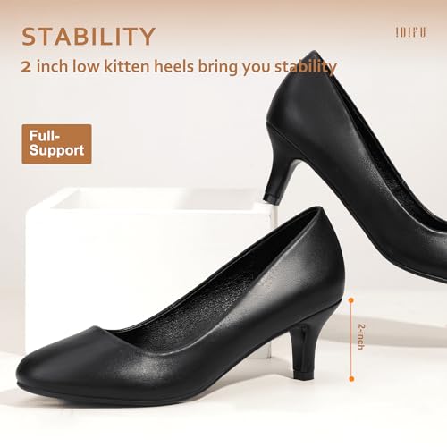 trending ! IDIFU Women's retro Low Heels Dress Pumps 2 Inch Kitten Heel Round Toe Office Wedding Shoes