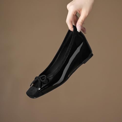 Alyaafifa pleasant Low Heel Wedge Pumps for Women 2 Inches Closed Square Toe Mary Janes Suede Leather Dress Shoes Party Event Wedding Prom Office Working