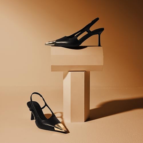 trending ! MeiLuSi Slingback Heels for Women IN3 Kitten Heels Metal Pointed Toe Pumps Backless Heels Slip on Elastic Strap Party Dress Shoes