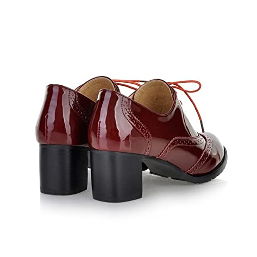 Amtopiyo Women's Mid Block Heel Brogues Pumps Vintage PU Leather Lace-Up Oxfords Dress Shoes