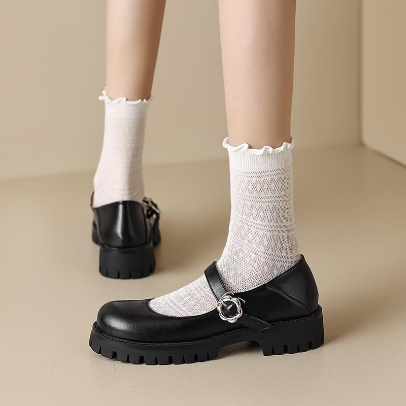 • DESIGN: Round toe mary jane flats uses two cute favored elements: Round toe and square-shaped buckle. Compared with the common pointed toe and square toe design, the round toe design is more cute and sweet;The square-shaped clasp is even retro and makes the feet look even cuter