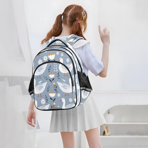 Cute Duck and Little Flower Backpack For Girls Kindergarten Elementary Bookbag Lightweight Childrens School Bag,Medium