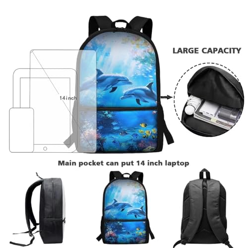 trending ! School Backpack for Kids Girls 8th Grade 17 Inch Middle Elementary School Bookbag for Teens Children Kawaii Backpacks with Zipper Front Pocket Fish&Dolphin Print