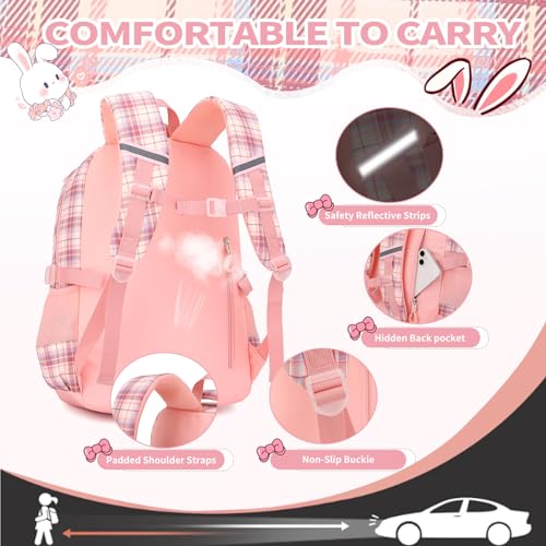 trending ! Girls School Backpacks Kids Bookbags for Primary Elementary High Students Teen Girls Cute 17inch Book Bag (Purple-Buny)