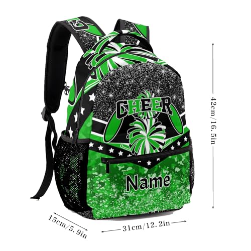 trending ! Custom Cheer Green Cheerleader Waterproof Backpack Casual School Bags Bookbag Daypack for Birthday Holiday Gift