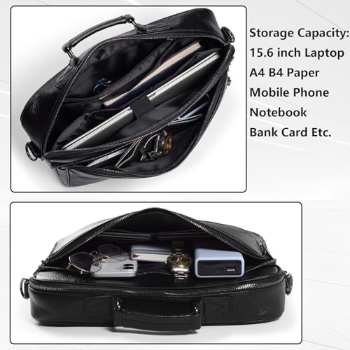 Origin: ImportedClosure type: ZipperDurable Material: This men laptop briefcase outer material is made with sturdy leather with polyester fabric inner lining that is supple to touch and strong nylon strap to securely support your bag. The thick foam compartment in the middle can provide protection for your computer from collisions and impacts. Strengthened with solid neat stitches to avoid loose threads, it can serve its purpose for long term.Large Dimensions: This leather satchel bag size: (L)14.57 x (W) 3.54 x (H)10.24 inches.Light Weight:1.76 pounds. Handle length: 3.94 inches.This business bag is specifically designed for 15.6-inch laptops. Also a great choice when you are facing a situation where you need to move your work home.Multiple Pockets & Large Capacity: This briefcase for men with a total of 10 pockets. Large Main zip compartments with 1 inner zipped pocket,1 open pouch and laptop partition with a velcro fastening strap. 2 Front zip pocket .1 Back zip pocket and so on,10 pockets in total. Roomy compartments provide separate space for your laptop, documents, tablets, phones, iPad, pens, charger, camera, magazine, books, business cards and all your items.Large Shoulder Bag for Men 2 in 1: The laptop bag comes with one removable shoulder straps. Length of removable shoulder strap: 35.43~62.99in.With just a few simple steps, you can achieve the transformation among the shoulder bag, crossbody bag and tote bag. It is also a perfect gift for your husband, friend, and family.Widely versatile and sophisticated: With a classic and minimalist design, this briefcase is perfectly matched with any business or professional outfit. The classic yet modern aesthetic style, coupled with solid metal accessories, makes it perfect for all kinds of meetings, daily commuters and business trips, enhancing your professional image. Perfect for everyday use. superior materials and excellent craftsmanship ensure long-lasting durability.