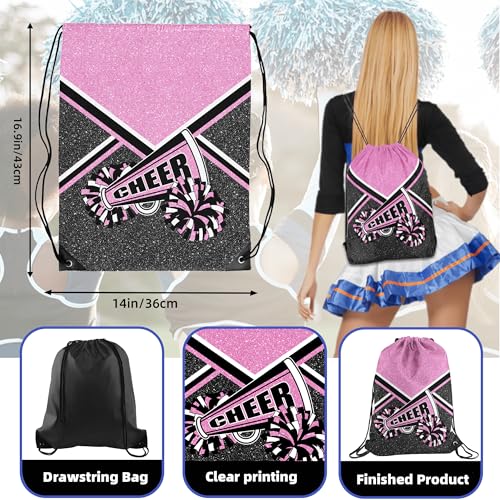 6 Pcs Cheer Drawstring Backpack Cheerleading Drawstring Bag Cheer Accessories Gifts for Cheerleaders (Pink)