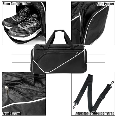 • Multiple Compartments for Organized Storage: This gym bag for men and women features 4 compartments, including a side pocket, front pocket, and full-length shoe compartment. exceptional for carrying changing clothes, towels, sneakers, water bottles, and other fitness gear to the gym