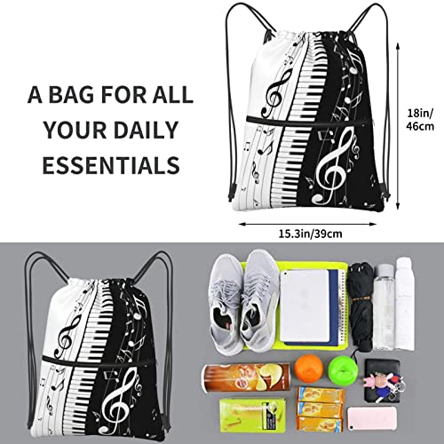 trending ! Famame Piano Keys Music Note Drawstring Backpack String Bag Sackpack For Gym Shopping Beach Sport Yoga