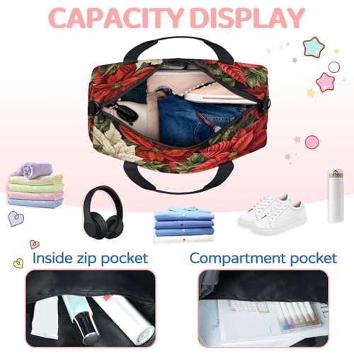 trending ! Poinsettia Flower Sports Duffle Bag for Women Men Waterproof Overnight Weekender Bag with Adjustable Strap Travel Tote Bags for Beach Yoga Work Dance Swim