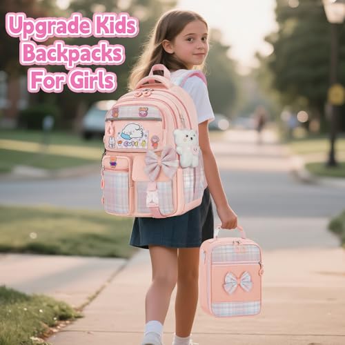 Girls Backpack with Lunch Box Set, 5pc Pink Cute Kawaii Bookbag for Teens, Aesthetic School Backpack for Elementary