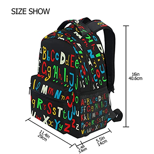 Education Alphabet School Bag Backpack College Bookbag, Rainbow Letter Laptop Backpacks Computer Bag Travel Hiking Camping Daypack for Women Girls Men Boys Students